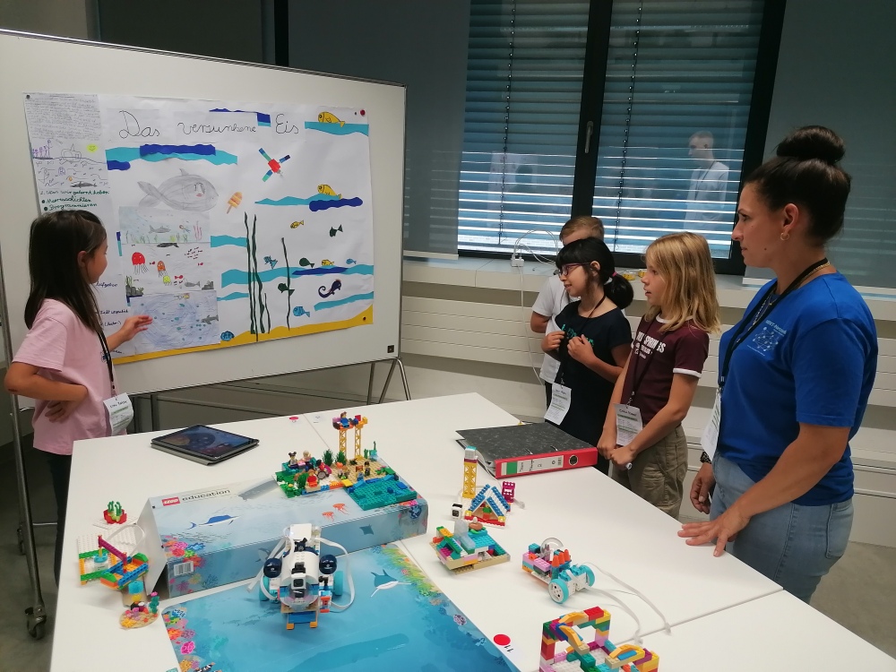 Am 15. Juli 2025 war es dann soweit: Unter der Begleitung von Rektorin Kathrin Körrenz nahmen die Teams am ersten regionalen First Lego League Wettbewerb auf dem Hochschulcampus Tuttlingen teil. Dort stellten sie ihre Projekte einer Fachjury, ihren Mitschülerinnen und Mitschülern, Eltern und weiteren Gästen vor – mit großem Erfolg!