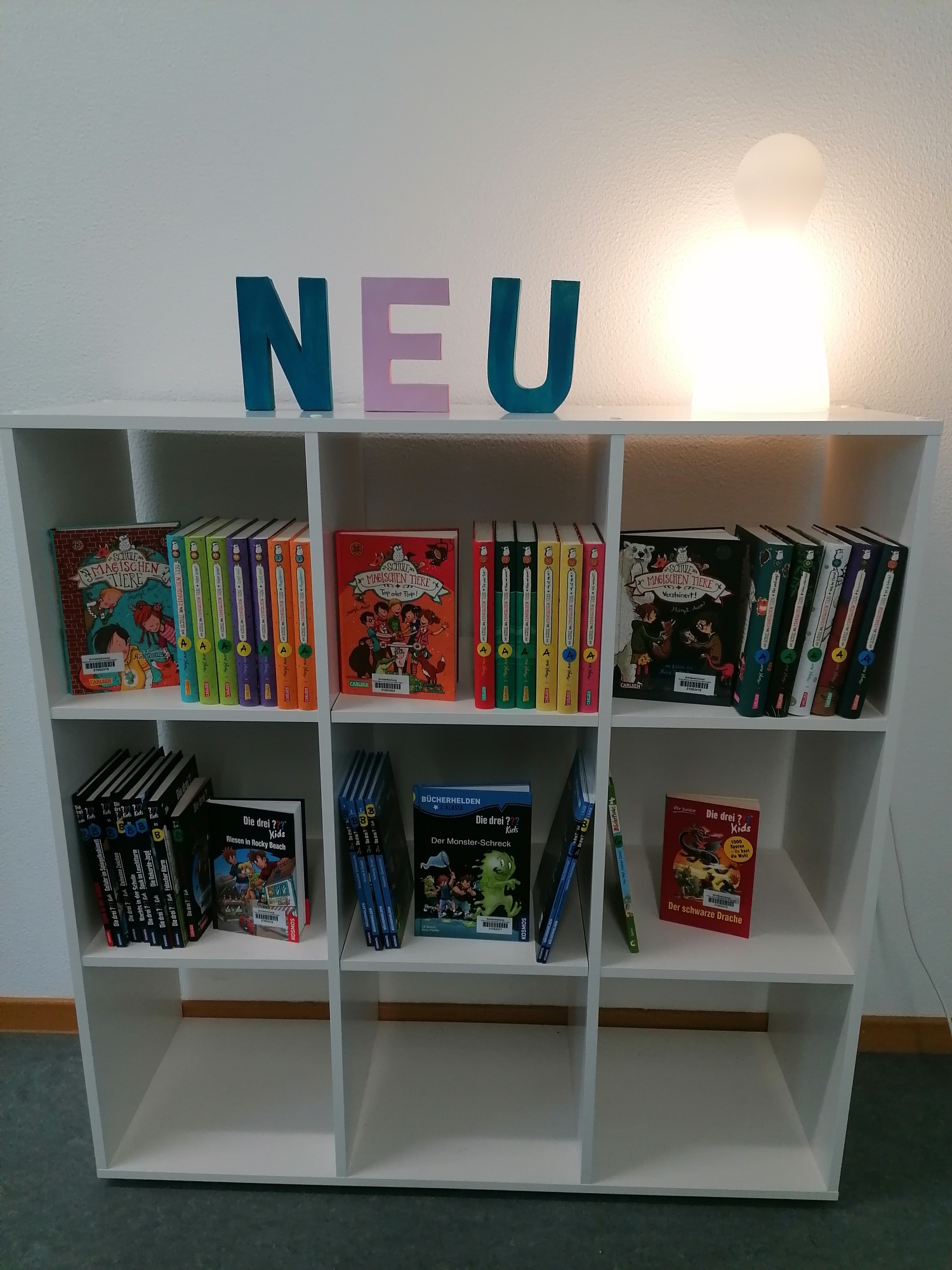 Zusätzlich konnten mehrere Buchreihen wie „Die Schule der magischen Tiere“ und „Die drei ??? Kids“ in die Bücherregale einziehen, die ab sofort unseren Schülerinnen und Schülern zur Ausleihe zur Verfügung stehen.